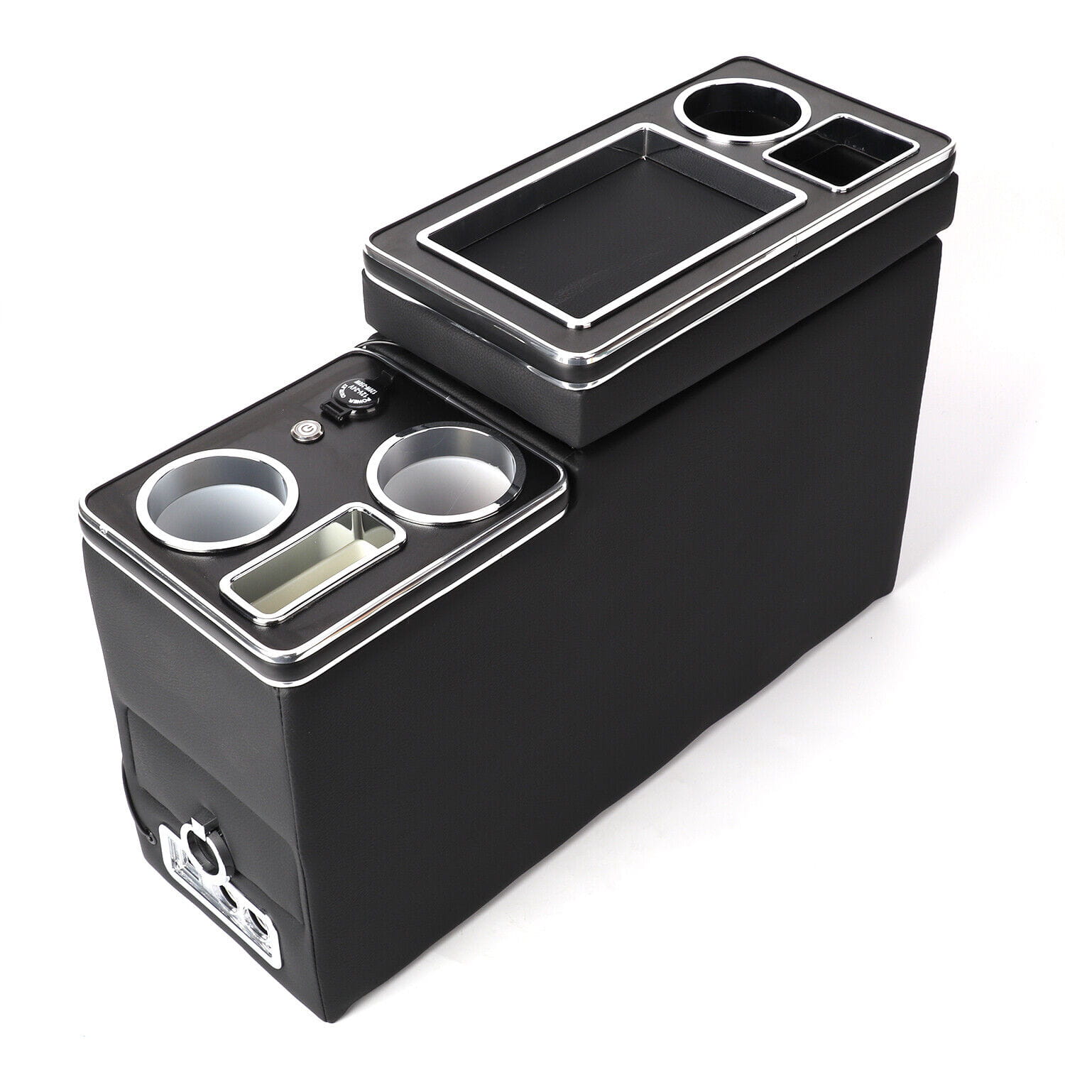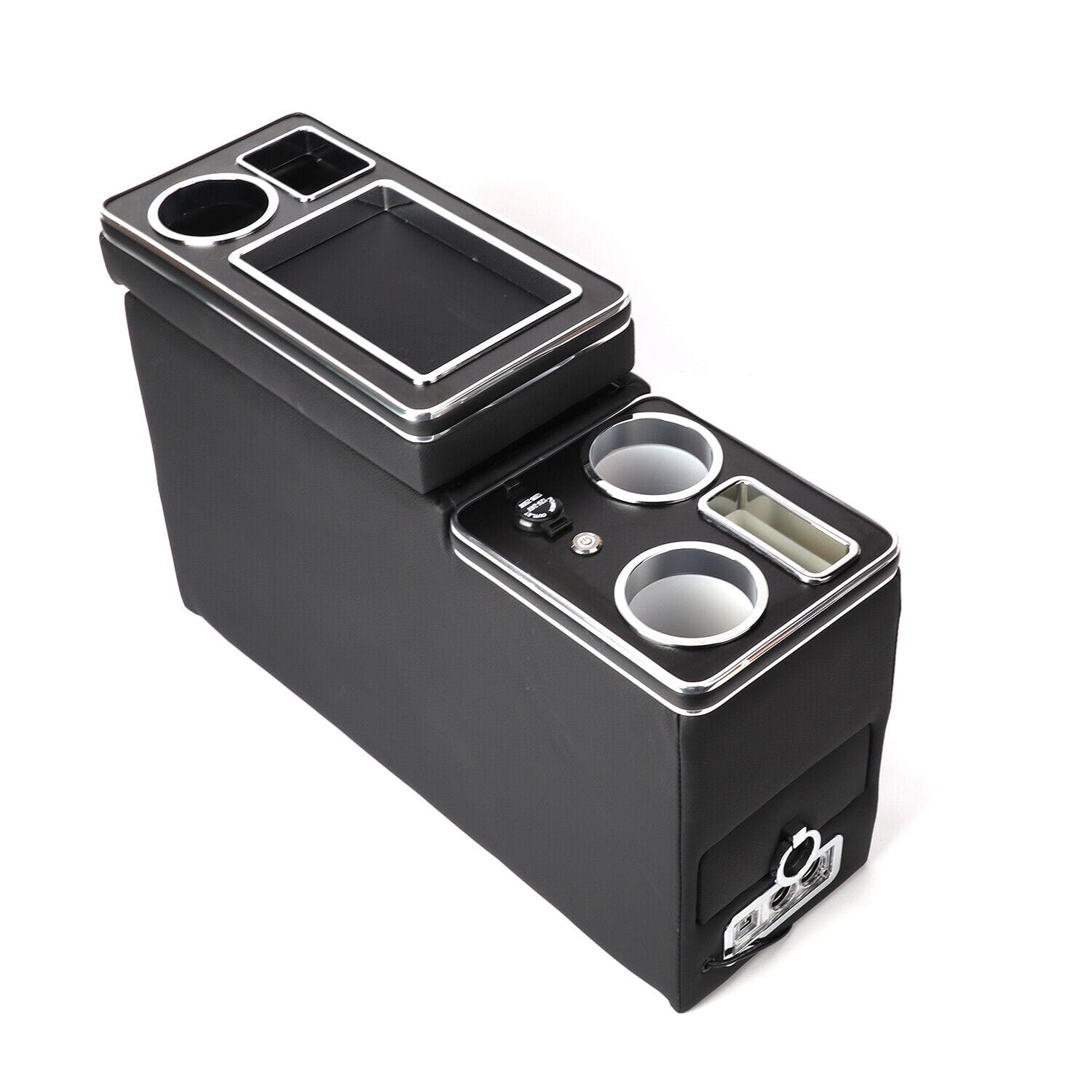 Unsere Ablage in der Mittelkonsole ist perfekt für die Aufbewahrung all Ihrer persönlichen Geräte wie Telefon, Getränke, Kleingeld und mehr. Es verfügt über einen Schiebemechanismus, sodass Sie Ihre Wertsachen verstecken können. Der Behälter wird mit Klettverschluss befestigt, so dass er sicher auf Fußmatten/Teppichen sitzt. In glänzendem Schwarz gehalten, mit schwarzem Kunstleder und Chromverzierungen versehen, ist es nicht nur eine fantastische Aufbewahrungslösung, sondern sieht auch ziemlich schick aus.