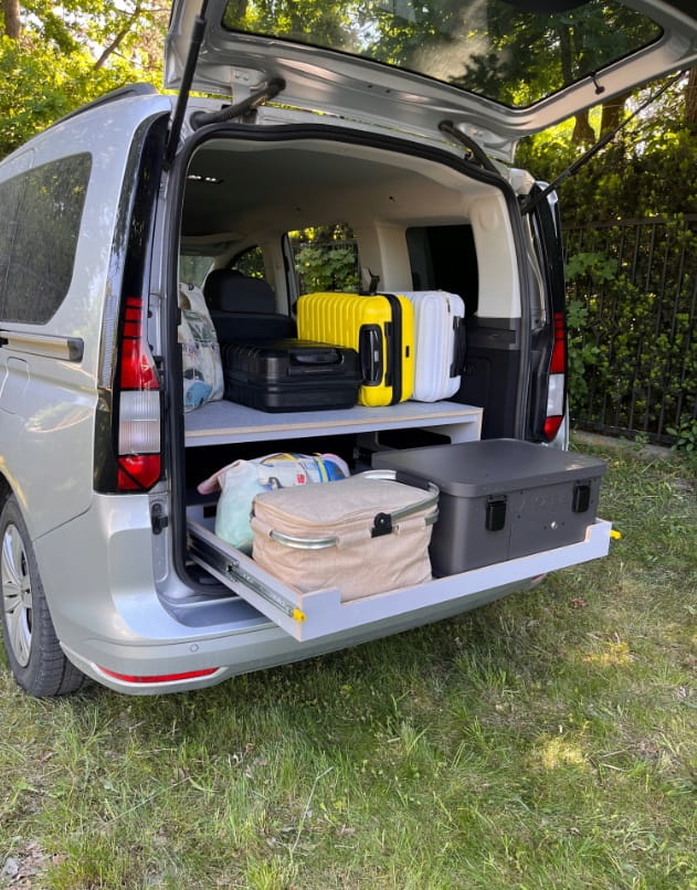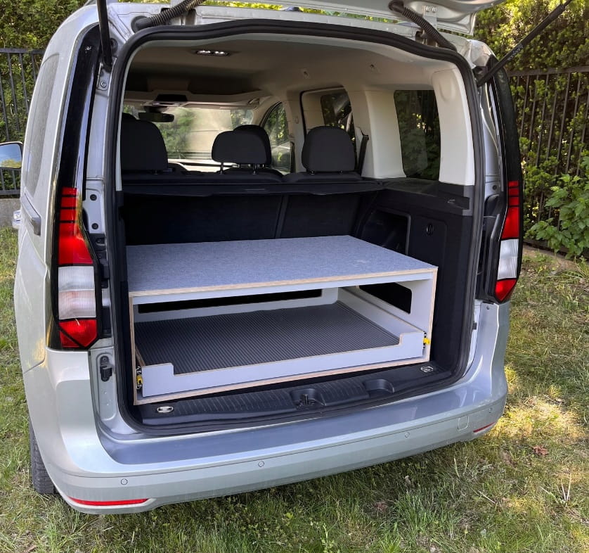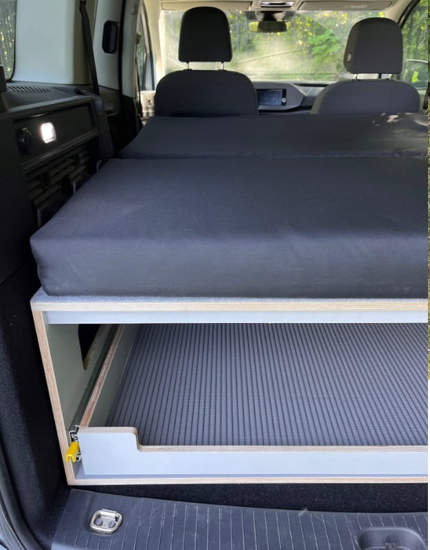 77 cm Verlängerung mit ausziehbarer Schublade, Schlafregal, Campingbett – Caddy, Caddy Maxi, Ford Tourneo Connect