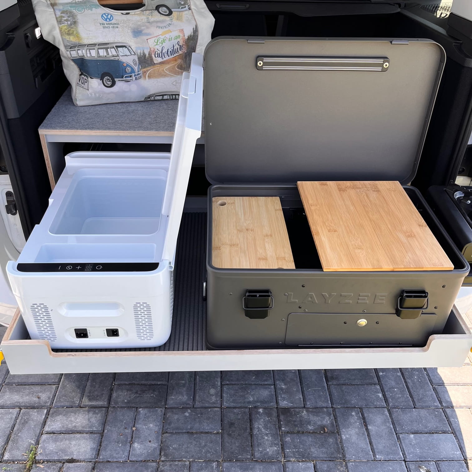 Unsere Erweiterung mit ausziehbarer Schublade ist eine konkurrenzlose Lösung für Campingbegeisterte, die von ihrer Ausrüstung nicht nur Vielseitigkeit, sondern auch Eleganz und Funktionalität erwarten. Dieses Produkt ist ein echtes Juwel in der Welt des Tourismus und vereint modernes Design mit intelligenten Lösungen.