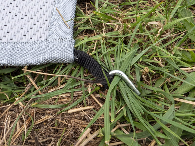 Schlaufen an den Ecken: Sie ermöglichen eine einfache Befestigung des Teppichs, z. B. an Heringen.