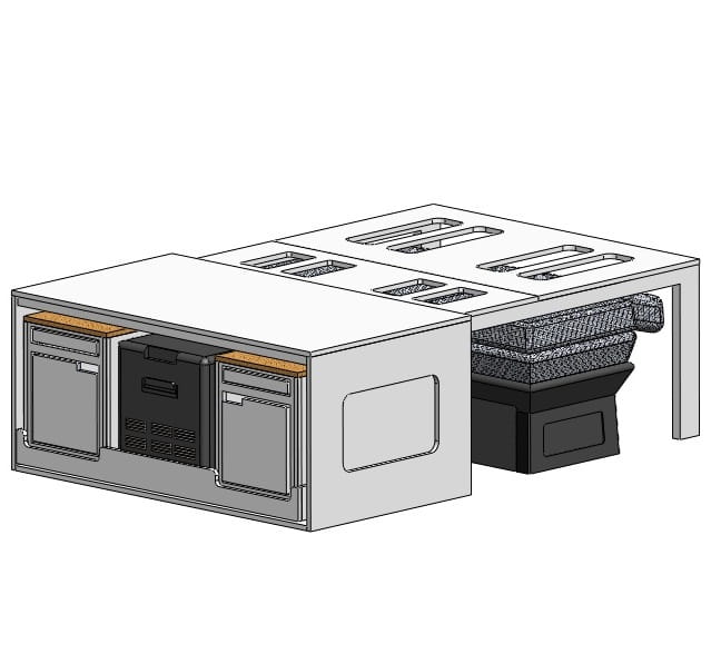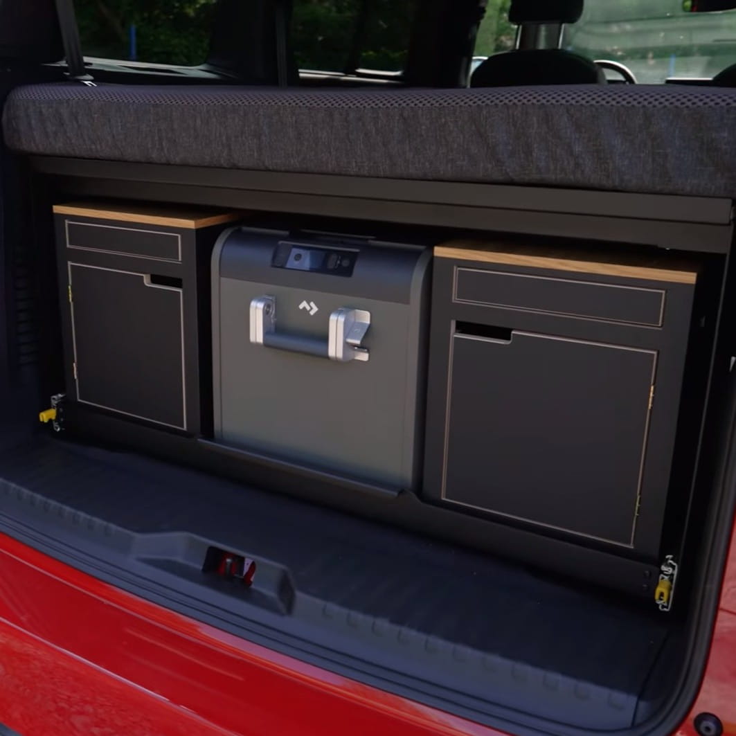 Campingbox, Campingaufbau, Touristen box, Schlafsystem, Modularer Campingausbau, Schlafgestell Camping Ausbau, Camper Ausbau, Camping Möbel, Küchenmodul - Volkswagen ID Buzz, ID Buzz PRO, Cargo