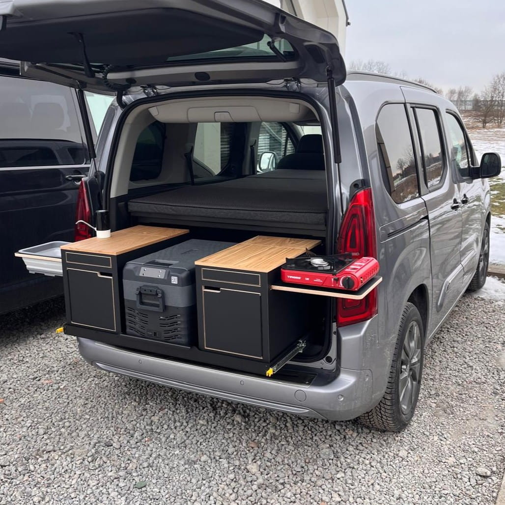 Campingbox, Campingaufbau, Touristen box, Schlafsystem, Modularer Campingausbau, Schlafgestell Camping Ausbau, Camper Ausbau, Camping Möbel, Küchenmodul - Peugeot Rifter, Peugeot Partner