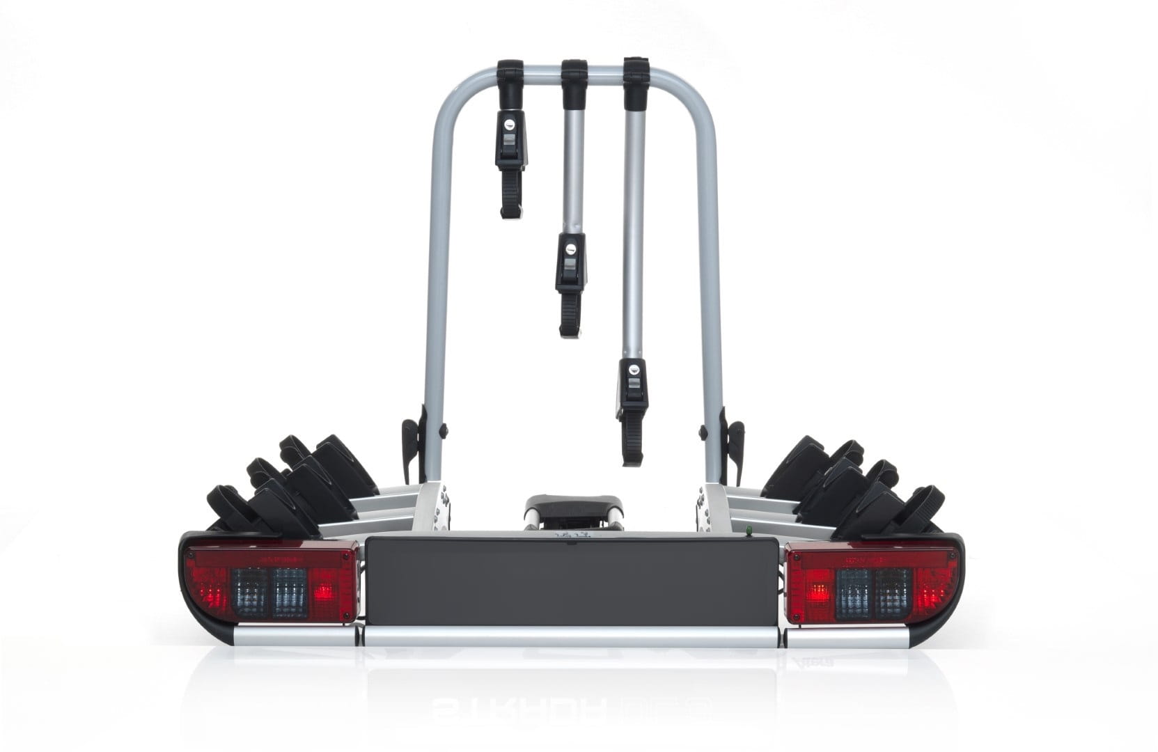 An der Anhängerkupplung montierter Fahrradträger – 3, 4 Fahrräder, vollständige Heckklappenöffnung, Elektrofahrradträger Volkswagen Neuer Multivan T7, Neuer California T7